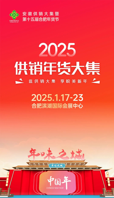2025年合肥年货展将于1月17日-23日在滨湖国际会展中心盛大举行。年货节自2007年创办以来,发展成为年货市场的“常青树”。今年安徽供销年货大集规模持续扩容,设置十大主题展区,满足消费者追求绿色健康、个性多样、文化特色、科技智能等需求。