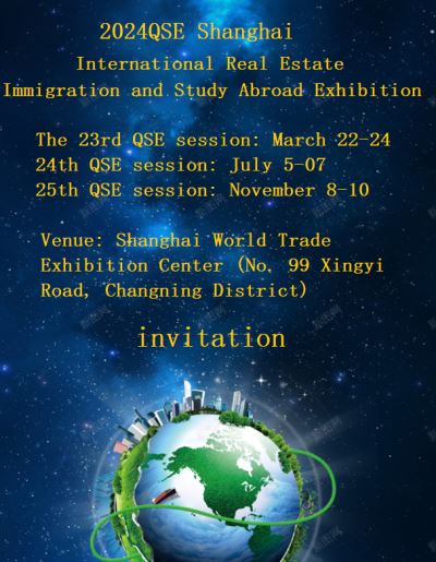 2024QSE上海第25届海外置业投资移民留学展览会 展会时间:2024年11月8-10日 展览地点:上海世贸展览馆(长宁区兴义路99号)